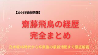 乃木坂46の"次世代エース"として時代を駆け抜けた齋藤飛鳥さん。グループ卒業後も女優・モデルとして驚異的な活躍を続けています。この記事では、齋藤飛鳥さんのプロフィールから芸能界入りのきっかけ、乃木坂46時代の輝かしい活躍、そして卒業後の最新...