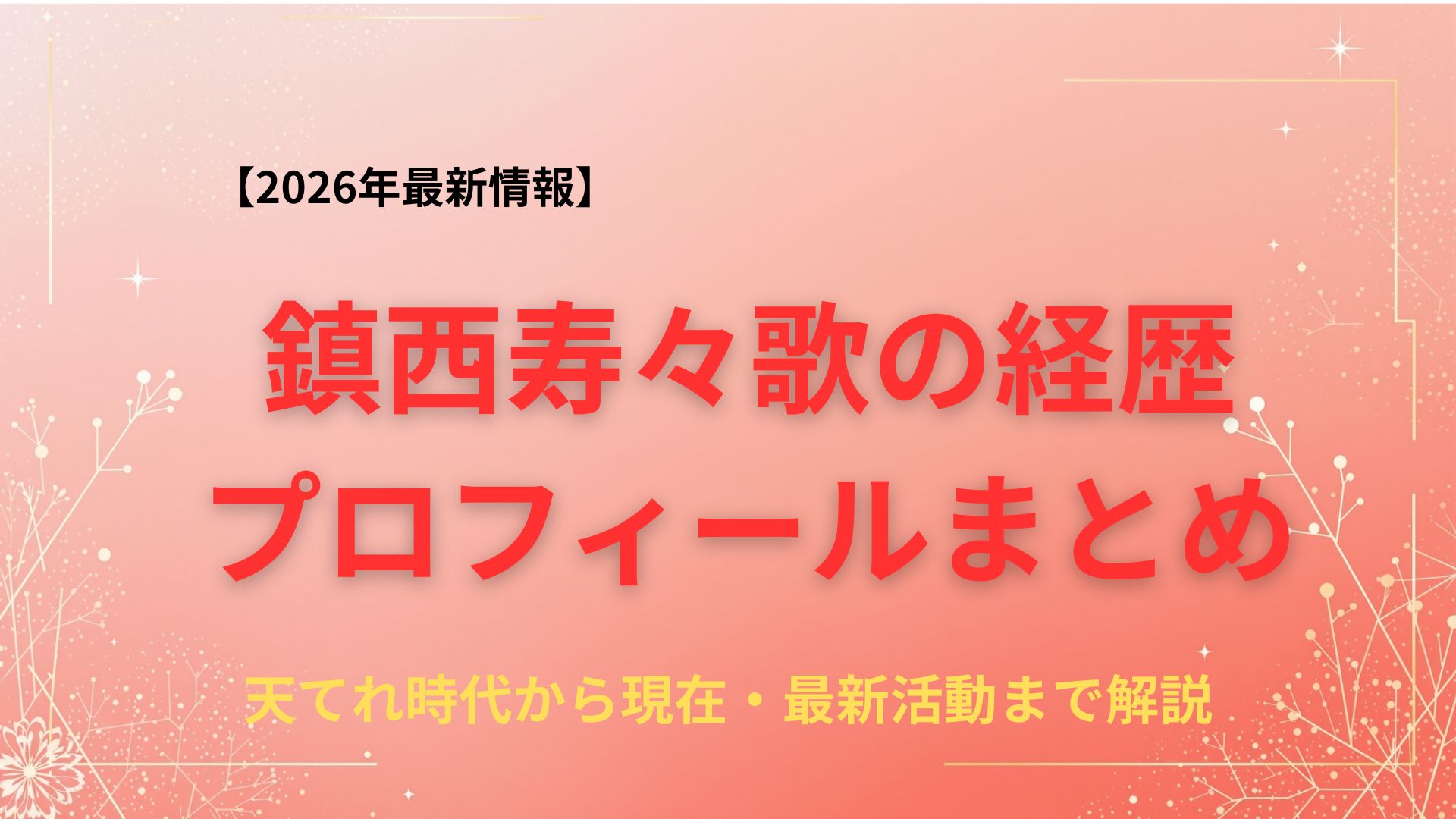 この記事では、鎮西寿々歌さんのプロフィール・学歴・経歴から最新の活動内容まで、徹底的に解説します。